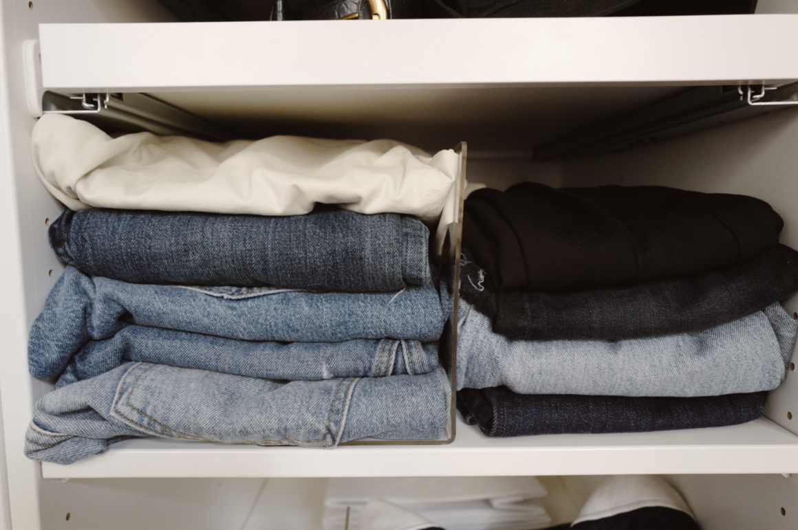 When I discovered these shells separators I was in! I didn’t know they existed, but now they changed my knit game. I used them to keep stuff tidy, but they can also be great for dividing shoes, bags and anything you want. For me they are great for knits as knits tend to “flow over”. Not with these organisers. Also for keeping jeans neat, they are such a smart little invention.