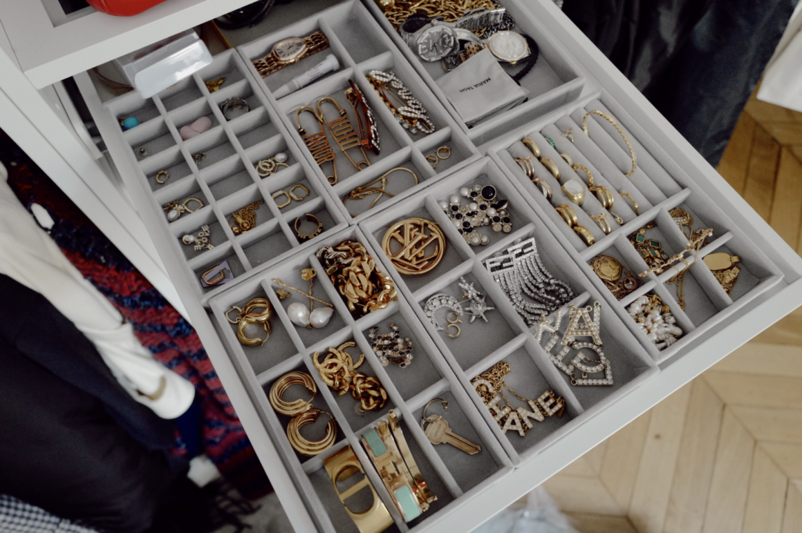 Not a secret how I organise my jewellery. I think I bought 5-6 of these trays with different layouts. You can choose the larger compartments, the ring sections, the earring sections – literally anything your heart would wish for.
