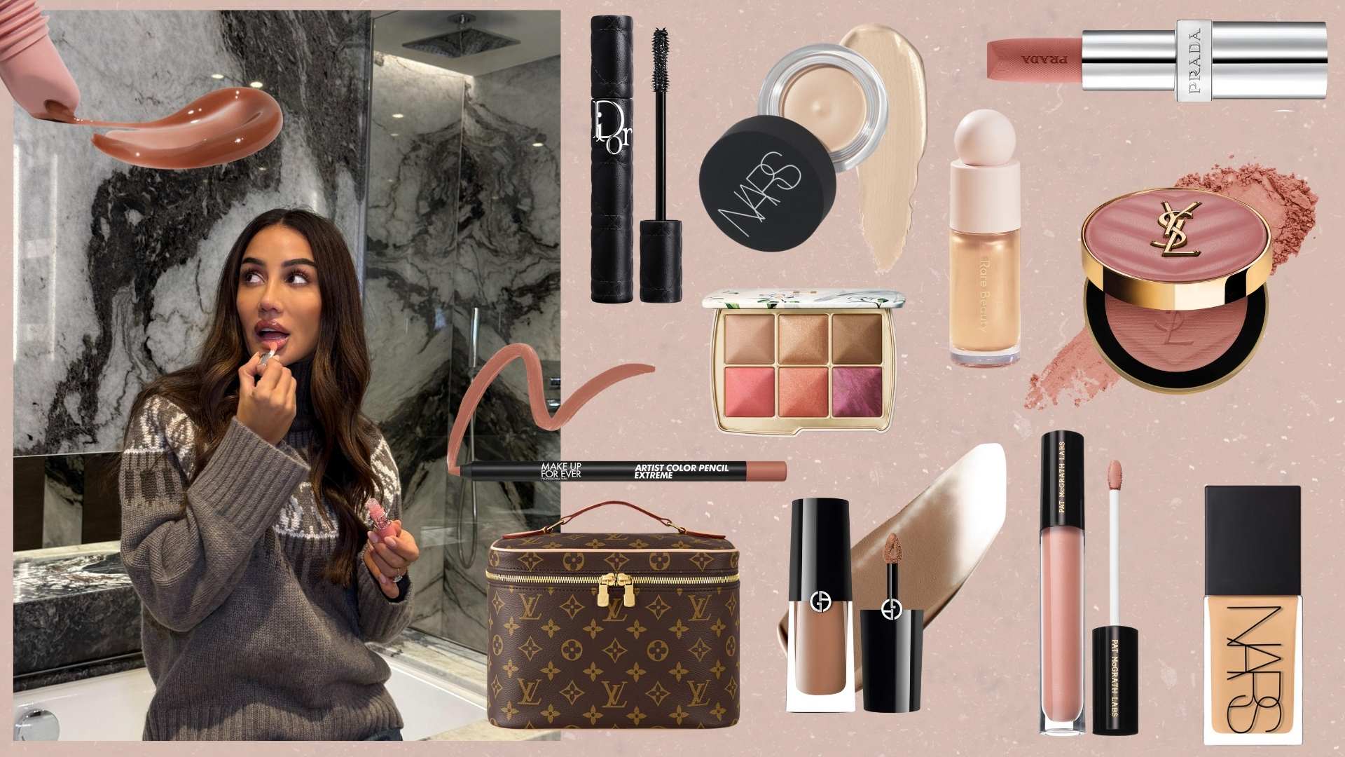When it comes to eye makeup, the Armani Beauty liquid eyeshadow in a soft brown shade is one of my quickest and most-used products. It takes seconds to apply, blends effortlessly, and instantly makes the eyes look polished. I would never skip mascara either, and Dior Show Overvolume is the one I always come back to for bold, defined lashes.